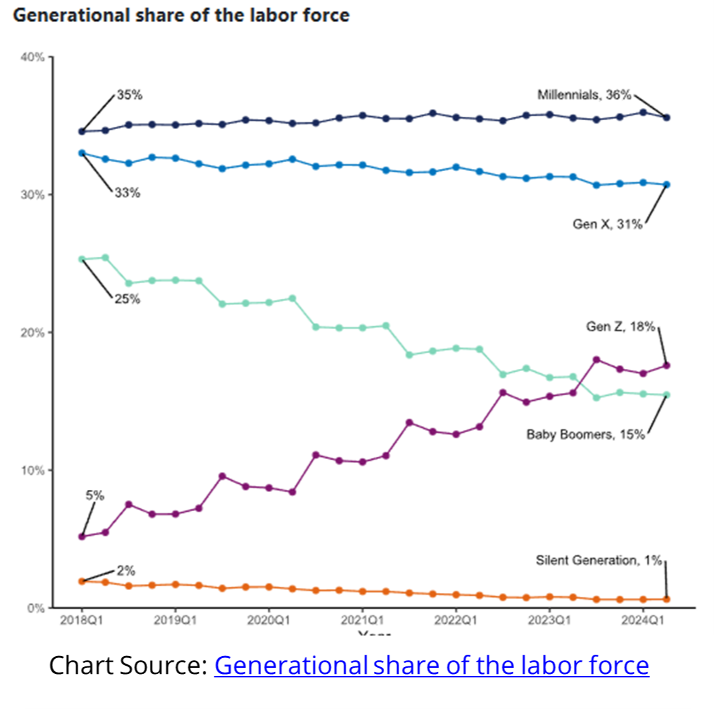 While the shift looks simple on a chart, it brings real-world challenges. Experience, leadership, and tribal knowledge are walking out the door, while younger, eager, but less-experienced workers are stepping in.